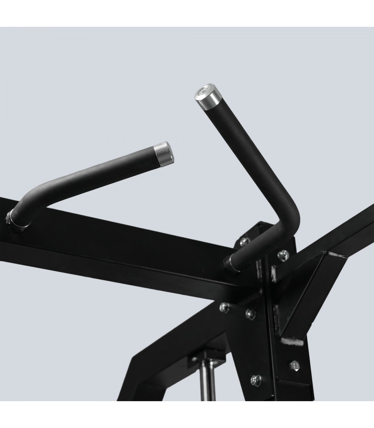 Seine verstärkte Stahlstruktur sorgt für Robustheit und eine irreproachbare Stabilität, auch unter schweren Lasten. Das automatische Verriegelungssystem und die Multipositionshaken sorgen für maximale Sicherheit während der Übungen. Die integrierte Traktionsleiste mit mehreren Buchsen ermöglicht es, Muskelarbeiten mit Zeichnen- und Suspensionsbewegungen zu ergänzen. Seitenaufbewahrungsregale bieten einen praktischen Raum zum Speichern von Ø50-mm-Festplatten, die die Organisation des Trainingsraums optimieren.