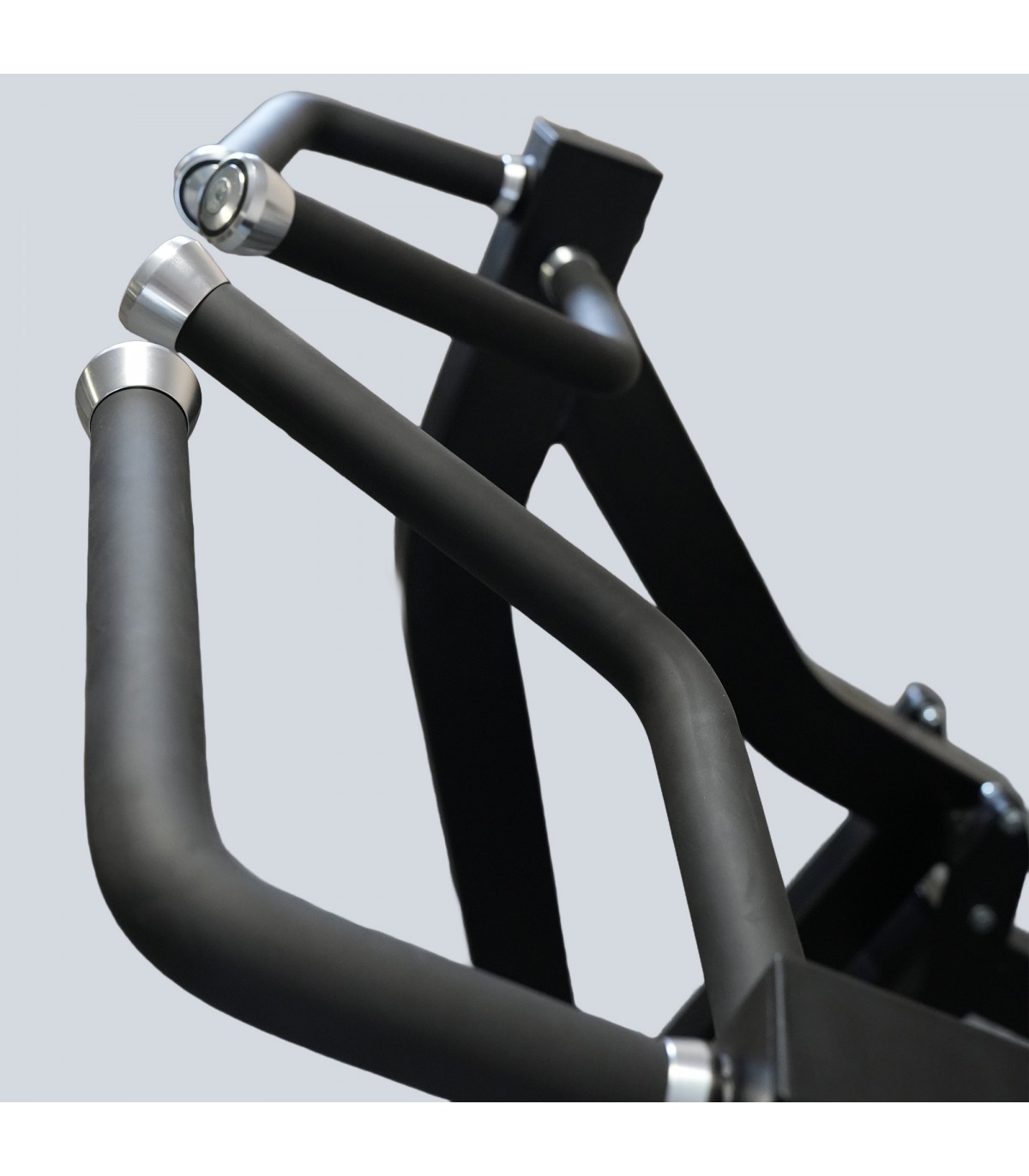 Its sturdy high-strength steel structure guarantees great stability and durability for intensive professional use. The adjustable seat and ergonomic backrest provide a comfortable and secure position, ideal for maintaining a correct execution of the movement. The fixed handles, composed of a straight version and a curved version, make it possible to vary the plugs to recruit different muscle zones according to the drive objective.