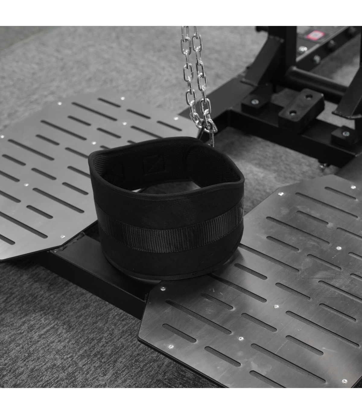 Its sturdy reinforced steel construction guarantees perfect stability and maximum durability, even in intensive professional use. The large anti-slip platform offers safe and comfortable support, while the adjustable belt and the connecting chain allow a natural and fluid motion amplitude. The secure leverage mechanism makes it easy to start and end the movement, ensuring simple and ergonomic use.