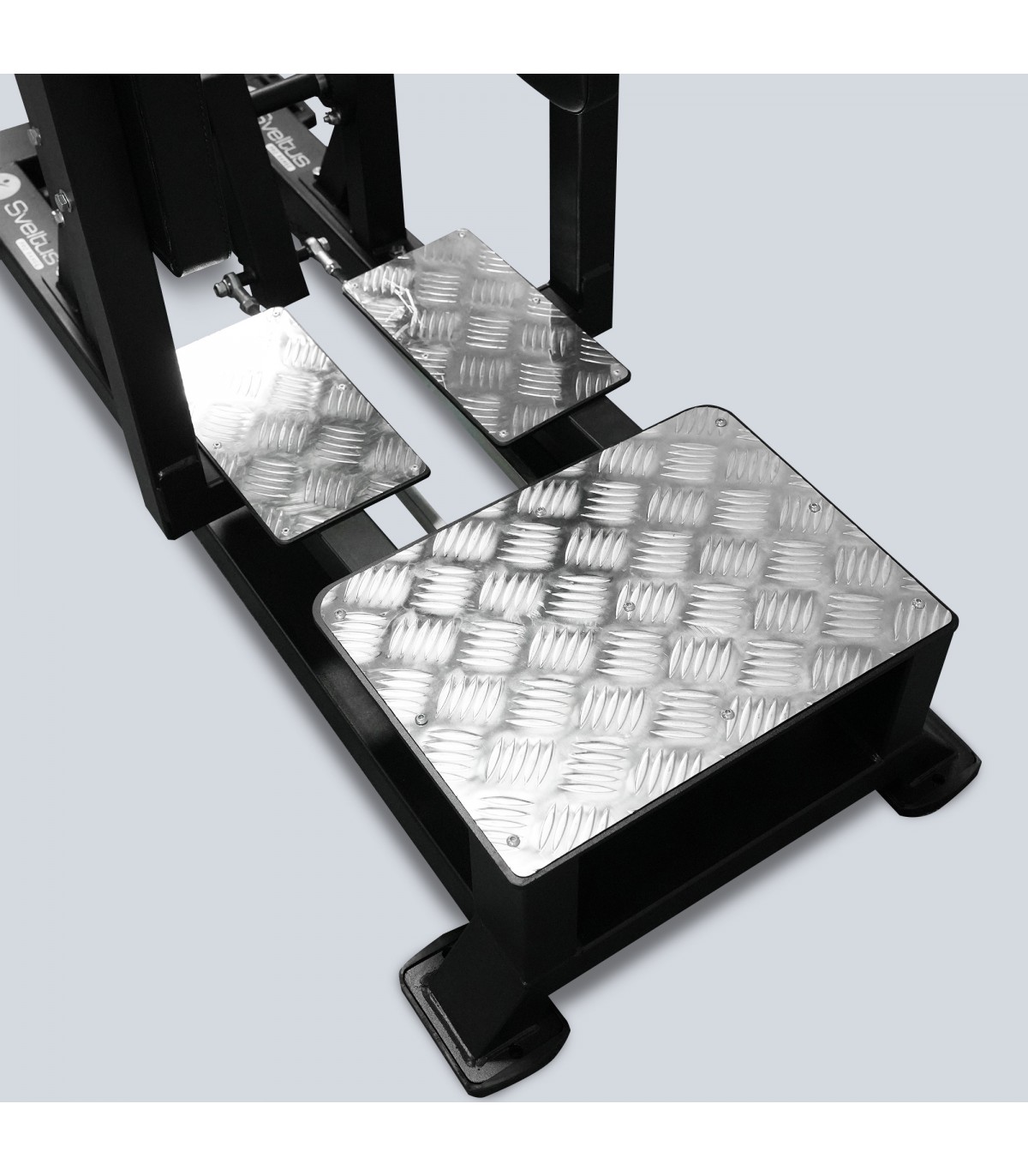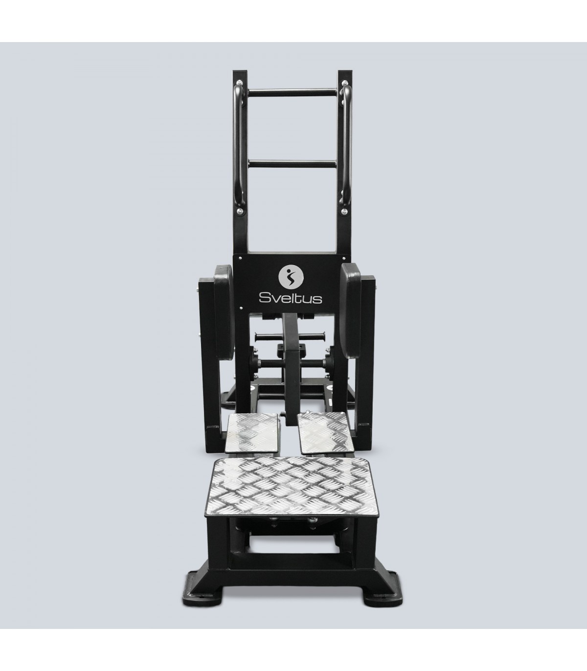 La Standing Abductor Sveltus est une machine de musculation hautement fonctionnelle, dédiée au renforcement des muscles abducteurs de la hanche. Conçue pour être utilisée en position debout, elle permet à l’utilisateur de réaliser un mouvement naturel de poussée latérale en plaçant le côté de la jambe contre le coussin d’appui situé à hauteur du genou. Les deux plateformes métalliques antidérapantes assurent une stabilité parfaite, tandis que les poignées frontales offrent un maintien optimal pour exécuter le mouvement avec précision et contrôle.